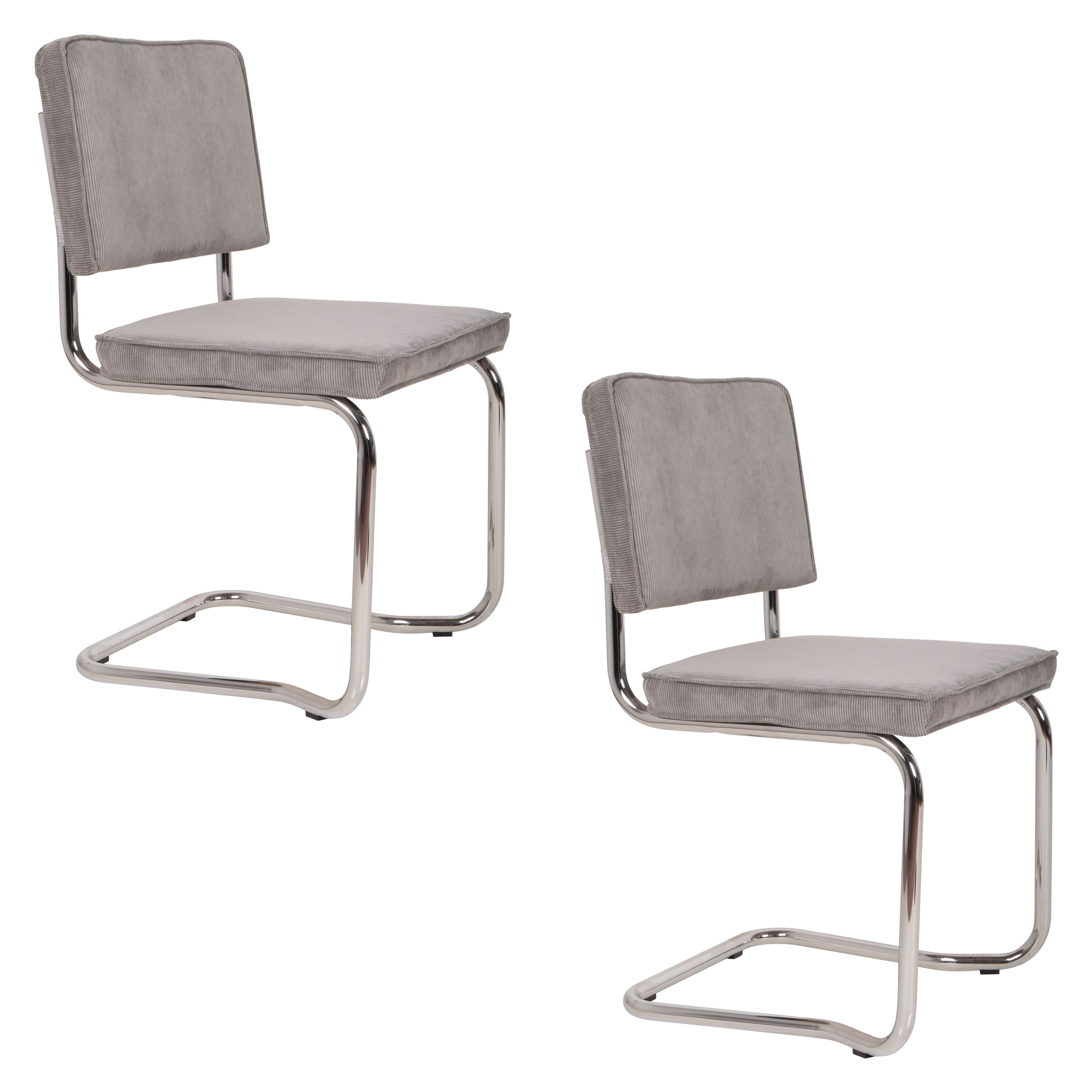 Zuiver Ridge Rib Kink Eetkamerstoelen Lichtgrijs - Set van 2