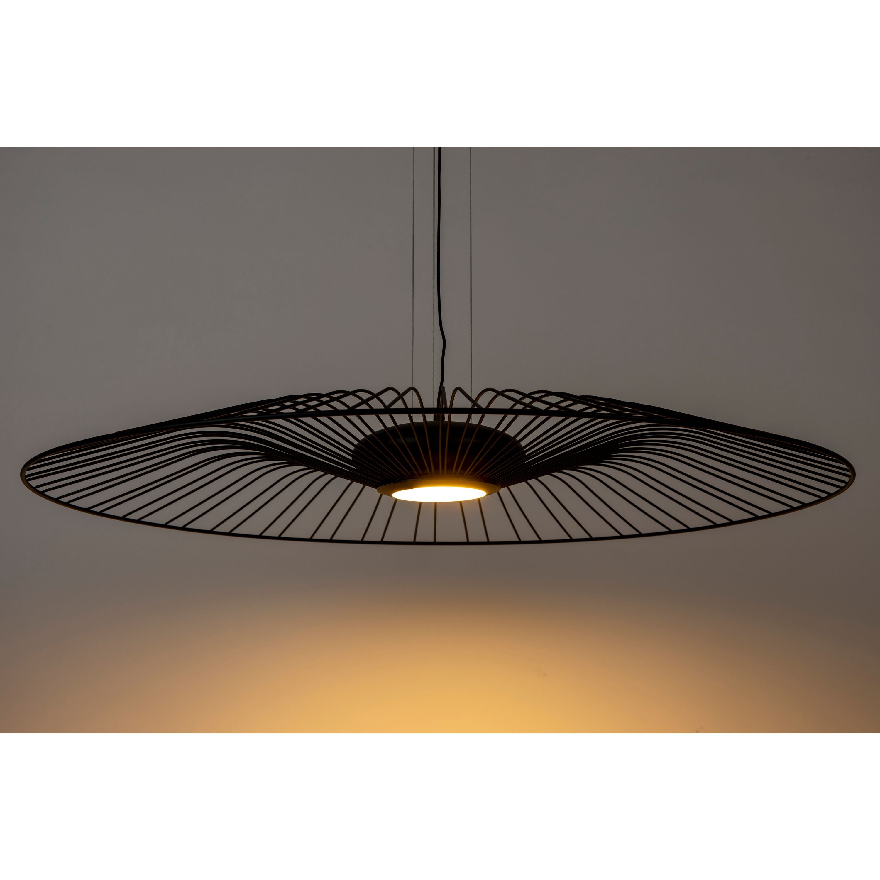 - Deze zwart metalen hanglamp heeft een open, luchtig ontwerp.