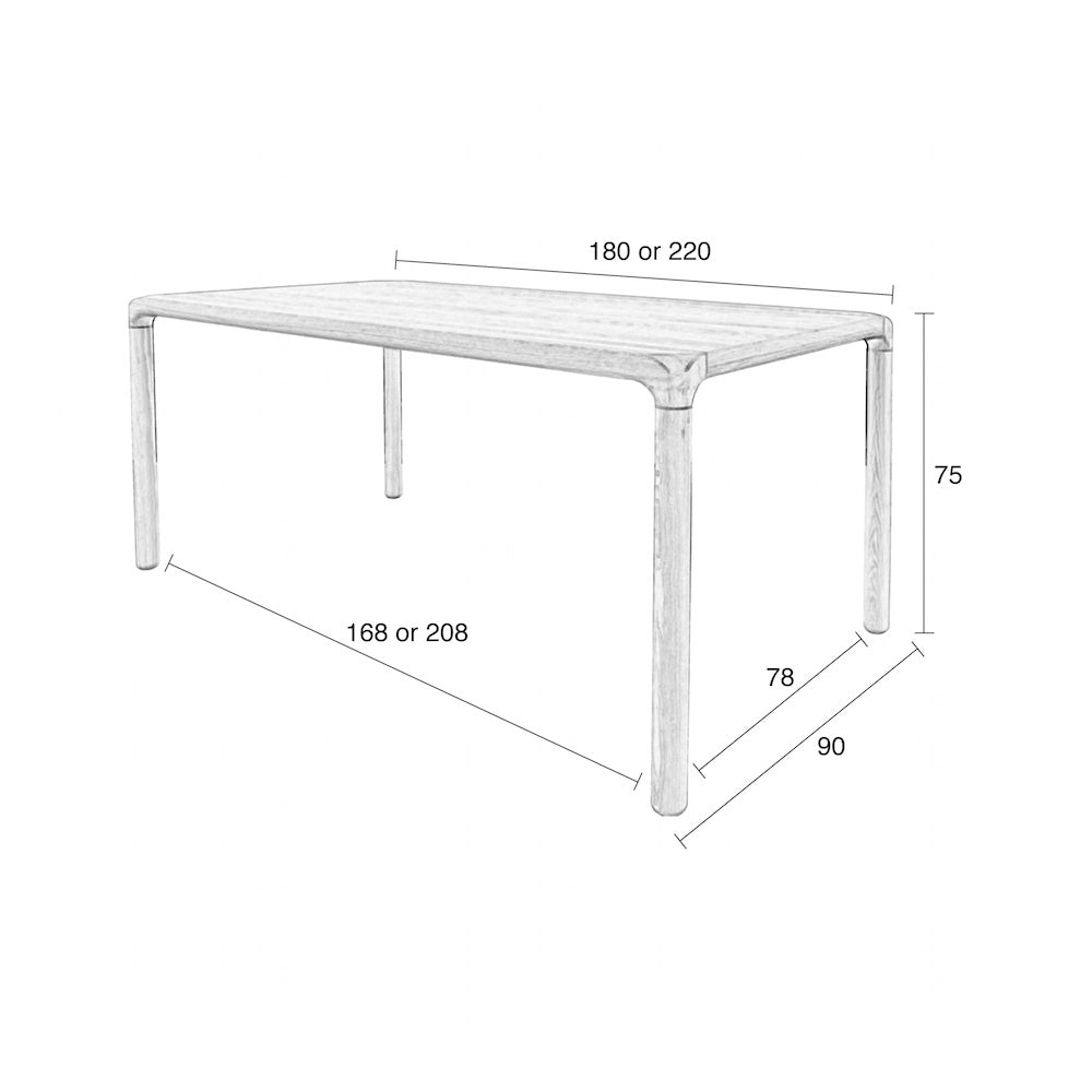 - Riante afstand tussen de tafelpoten: B 168 x D 78 cm
