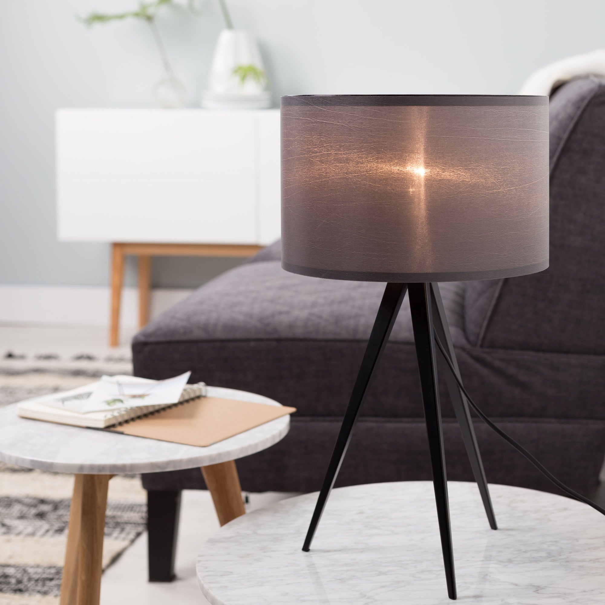 - Metalen tripod met een stijlvolle textielen lampenkap
