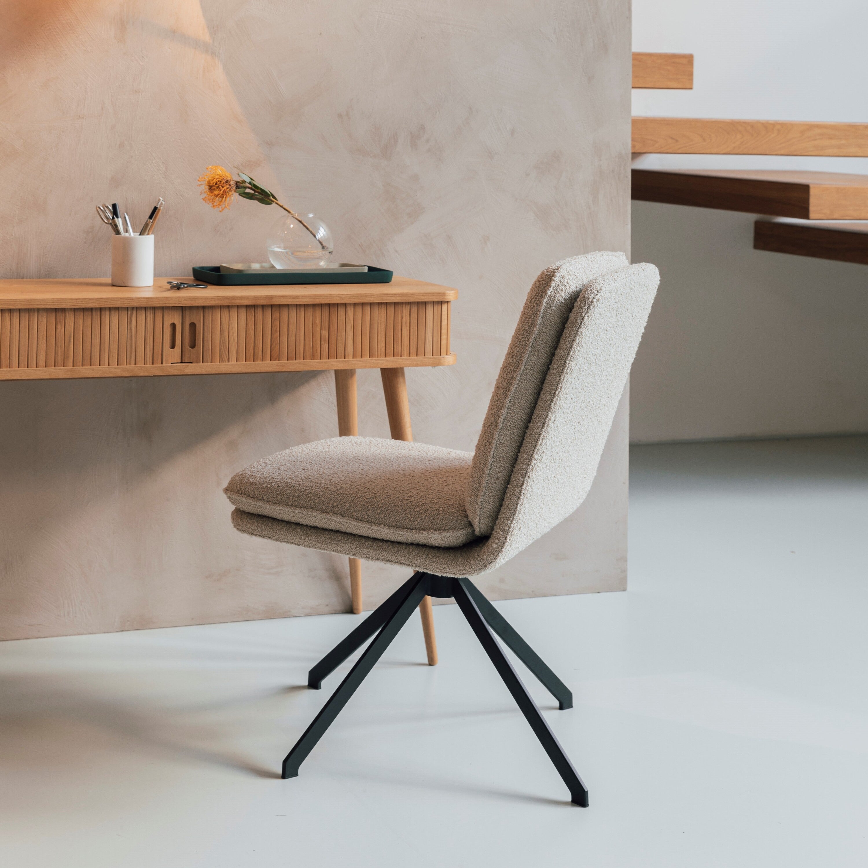 - Met een bouclé zitting van 81% polyester en 19% acryl