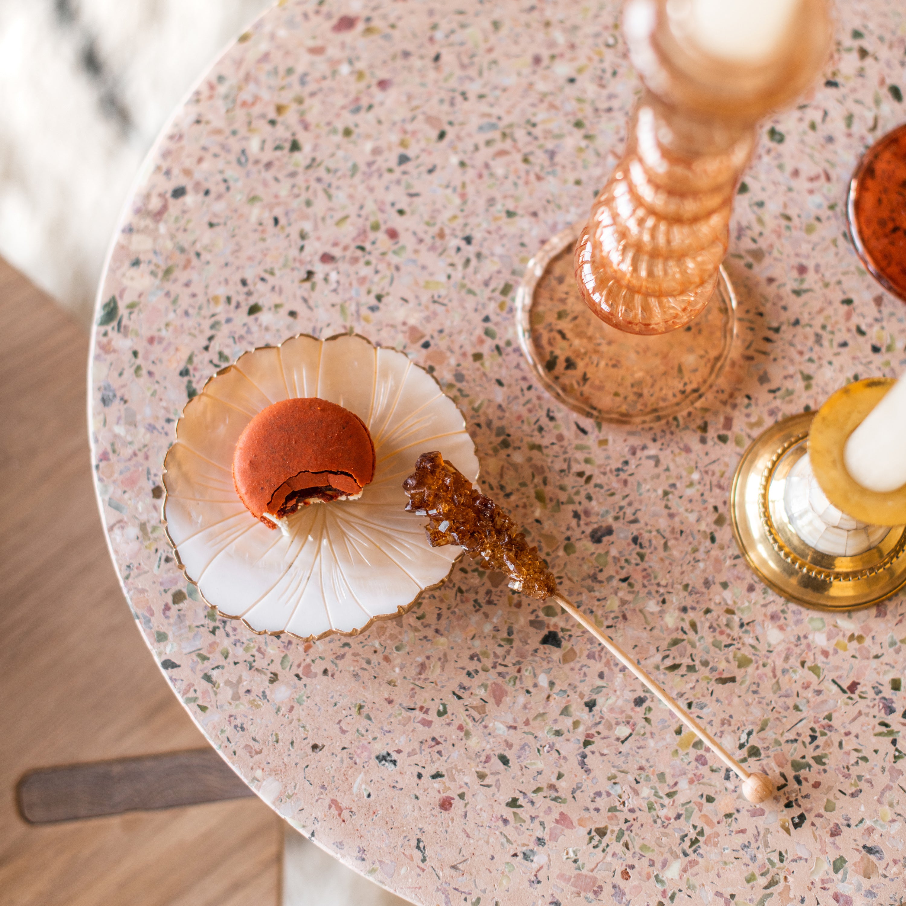 - Van terrazzo gemaakt, dus kras- en slijtvast