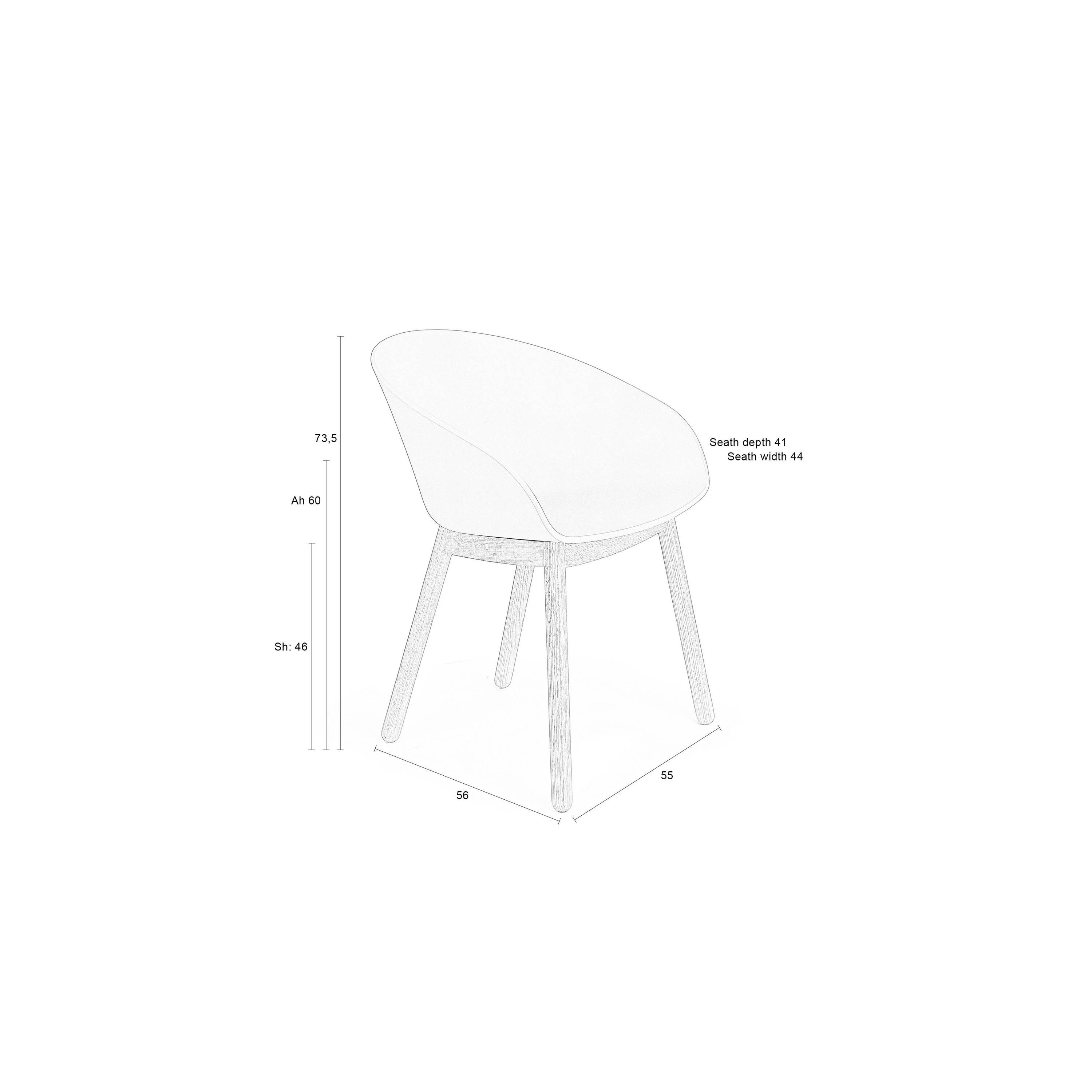 De hoogte van de zitting, gemeten vanaf de vloer. De ideale zithoogte bevindt zich tussen de 40 en 46 cm. Je zit het lekkerst met een ruimte van ongeveer 20 cm, tussen de stoelzitting en de onderkant van het tafelblad.