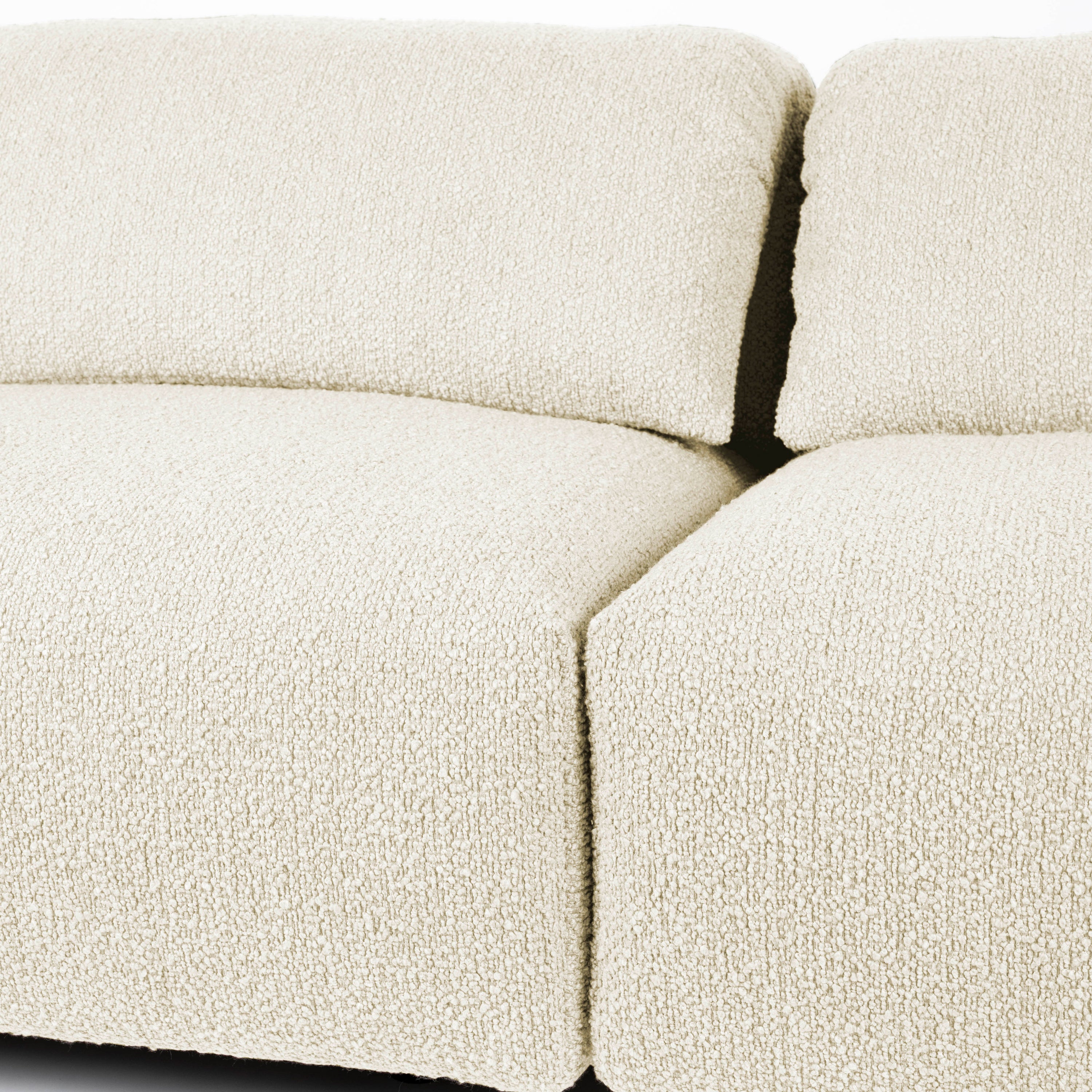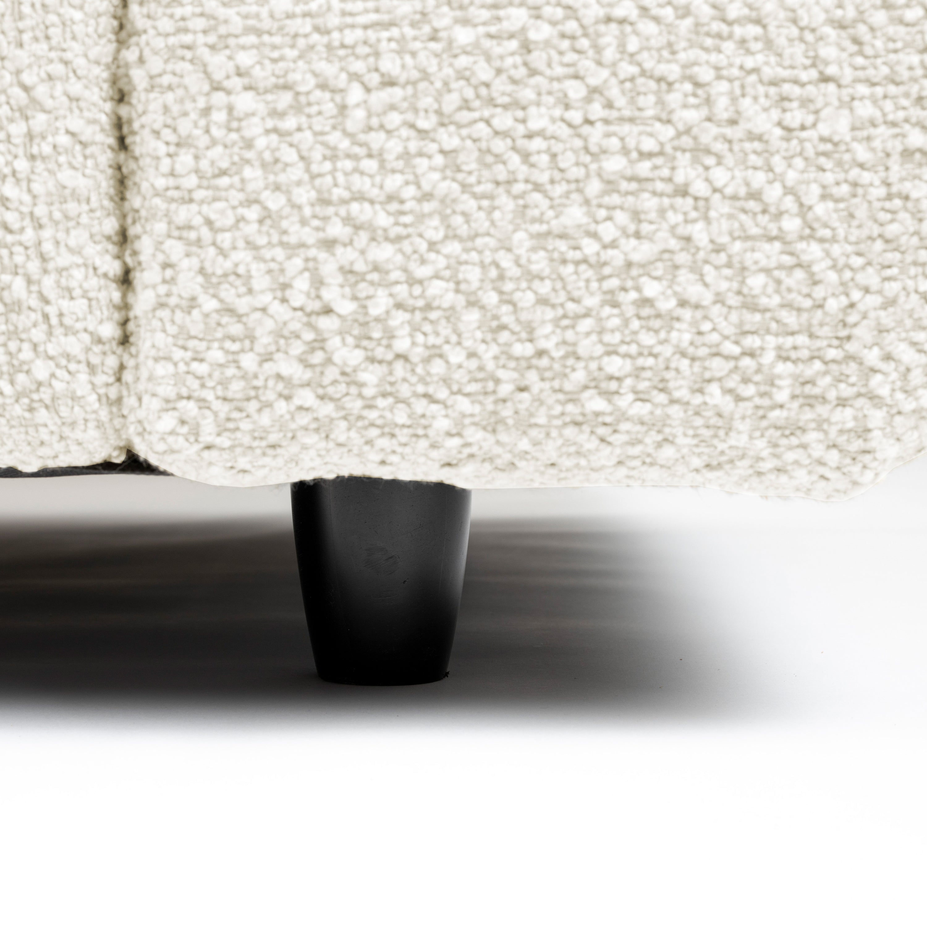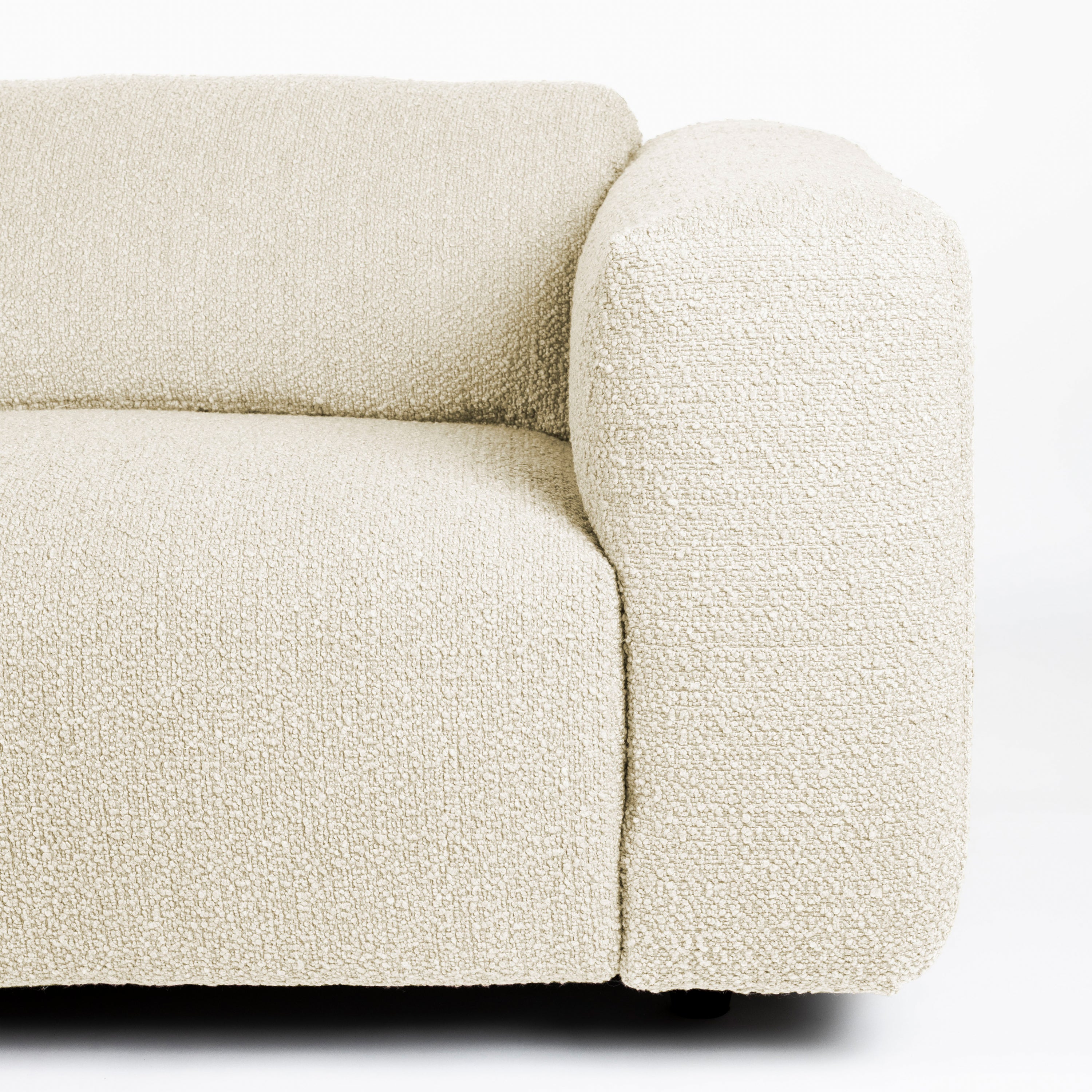 - Hij is bekleed met een bouclé stof, comfortabel en hip!