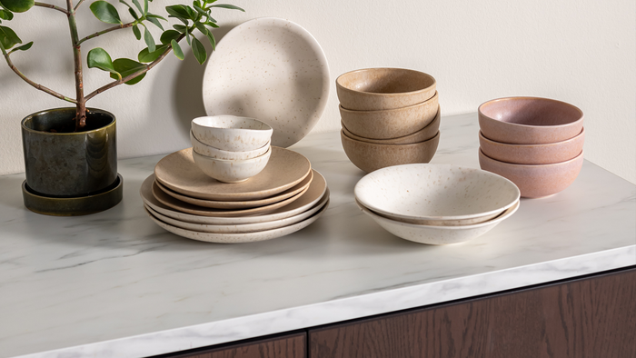 De keuken wordt steeds belangrijker in huis. Het is een plek waar we koken, gezellige gesprekken voeren en rustig werken aan de eettafel. Een fijne inrichting van de keuken is daarom een must! fonQ helpt je graag bij het inrichten van jouw keuken. Vind de juiste keukenapparatuur om heerlijke gerechten mee klaar te maken en bewaar je spullen netjes in mandjes of richt je keukenkastjes praktisch in. Natuurlijk mag een afvalemmer in de keuken niet ontbreken. Met speciale afvalemmers kun je tegenwoordig makkelijk afval scheiden zonder veel moeite te doen. Wil je de keuken een kleine upgrade geven? Dan is het veranderen van je servies vaak een goed begin.
